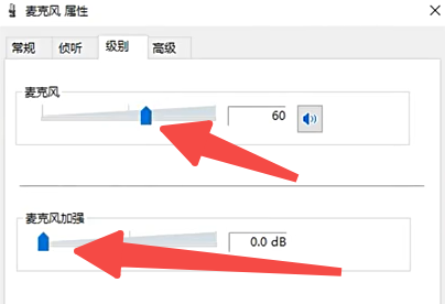 6、【级别】这里,将麦克风调至一半,麦克风增强拉至最小。