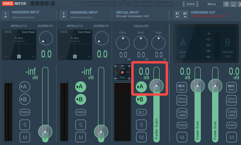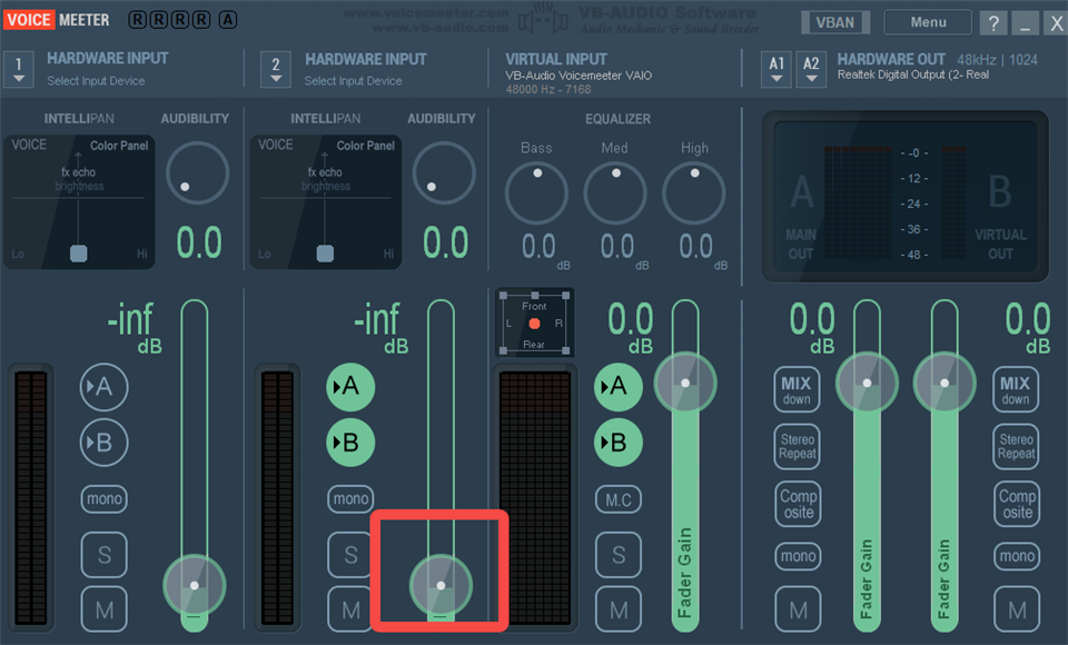 13、第三个轨道是RVC的音量控制轨道,A是监听RVC的声音,B是对方监听你的、经过RVCX处理的声音,一般滑块调为0。