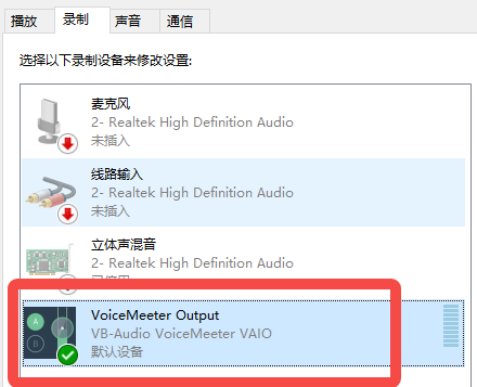 4、然后切换至【录制】板块,选择【Voice Meeter Output】。