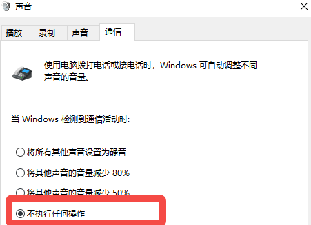 7、接着在【通信】这里,选择【不执行任何操作】。