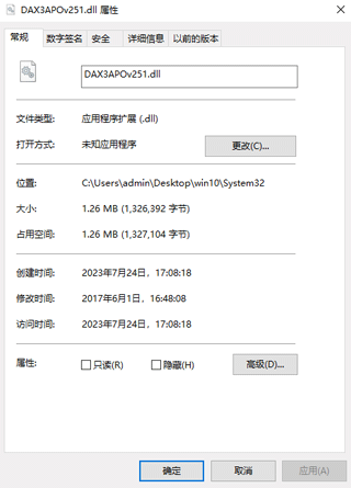 一、如果在运行某软件或编译程序时提示缺少、找不到DAX3APOv251.dll等类似提示,您可将从本站下载来的DAX3APOv251.dll拷贝到指定目录即可(一般是system系统目录或放到软件同级目录里面),或者重新添加文件引用。