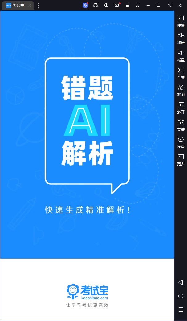 考试宝电脑版是需要借助模拟器在电脑上运行的一款题库学习模拟考试软件。软件内有着丰富的题库类型,涵盖了各个职业考试的题库内容,用户可以根据自身学习进度和需求,选择合适的题目进行刷题和练习,让用户可以全面、系统的进行考试复习,提高备考效率。