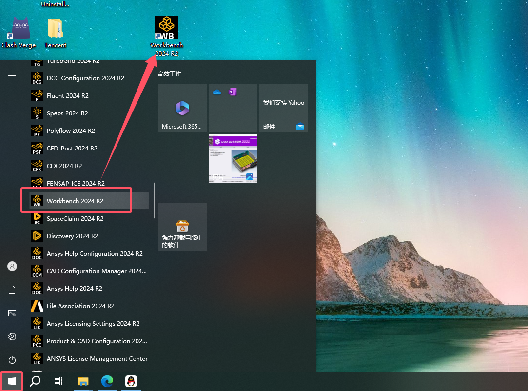 39、在电脑开始菜单里面找到软件【Workbench 2024 R2】,直接拖动到桌面,即可生成快捷方式