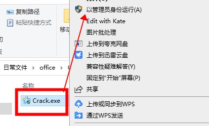 6、鼠标右击解压出来的【Crack】选择【以管理员身份运行】。