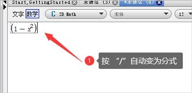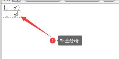 3、输入(1-x^2),按“/”键会发现自动为分子,再输入1+x^2变为分母