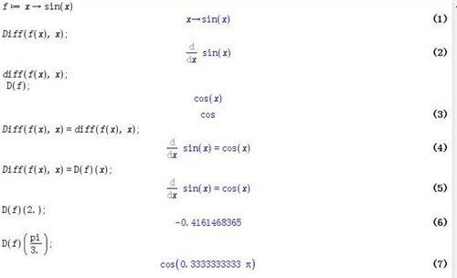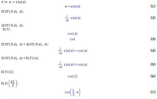 6、还可以这样:Diff(f(x),x)=D(f)(x)