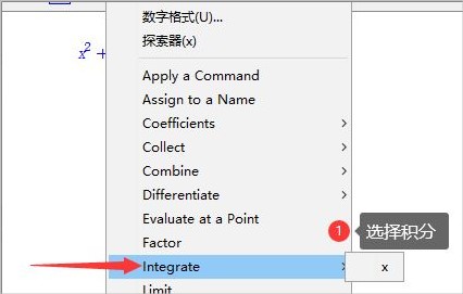 5、再在输出结果中右击选择选项,例如选择积分integrate