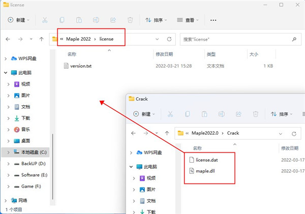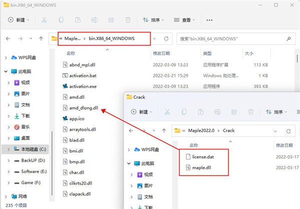 7、此时,先将补丁文件“maple.dll”复制到软件安装目录下进行替换
