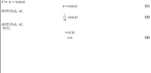 5、如果要输出一个完整的求导公式,就这样:Diff(f(x),x)=diff(f(x),x)