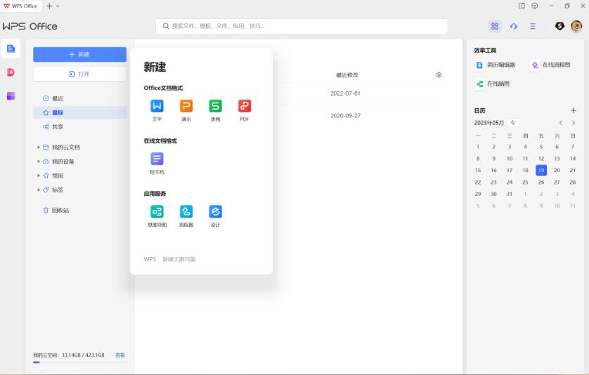 除了视觉恍然一新,全新版本还兼具更好的性能表现。我们进行了多项技术的重构,让软件启动、新建文档等多种高频操作的响应速度得到显著提升。全新文档组件全新组件「轻文档」正式上线了,为此我们重新设计了新建的界面,清晰地梳理了文档格式分类,让你每一次创作都能更容易地选择你所需要的文档,新建无限的可能。
