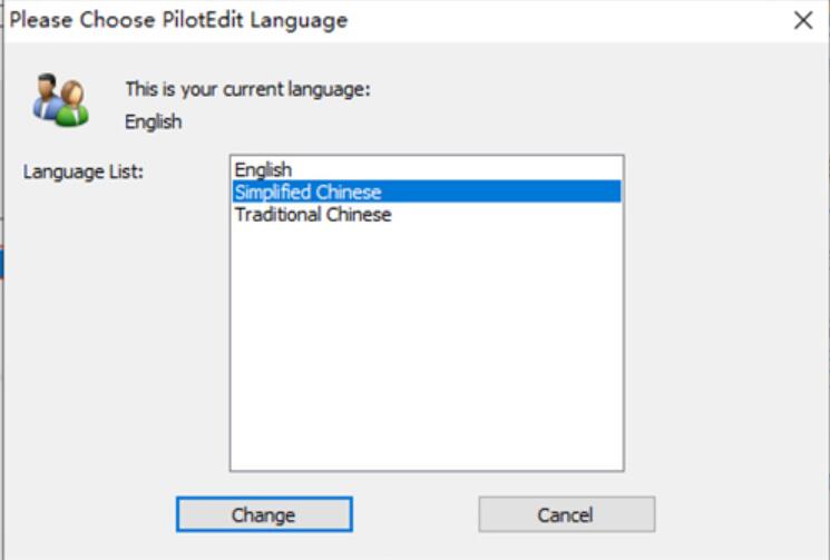 3.在弹出的“Language”语言选择窗口中选择 Simplified Chinese(简体中文)或 Traditional Chinese(繁体中文)后,点击窗口下方的“Change”按钮确定