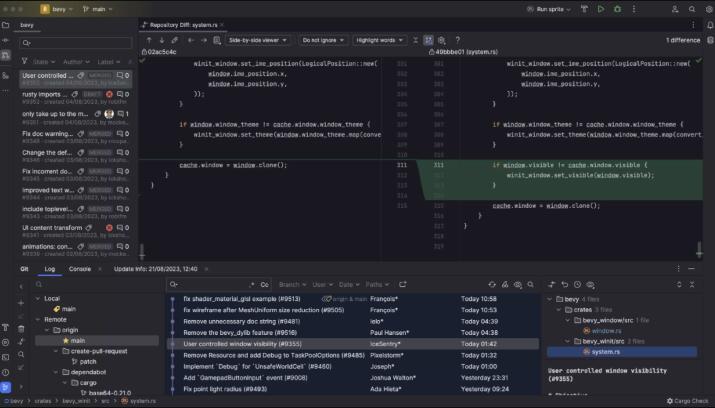 RustRover 支持 Rust、Cargo、TOML、Web 和数据库技术,以及 IntelliJ IDEA 的所有功能,包括 VCS 集成。