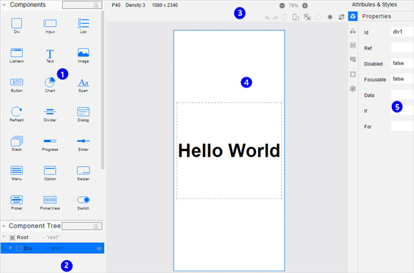 支持UI界面代码的双向预览、实时预览,动态预览、组件预览以及多端设备预览,便于快速查看代码运行效果。