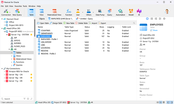 我们的对象设计器为您提供了管理数据库对象的简单和快速的访问。Navicat for Oracle通过一个方便的用户界面将查询写入标签。允许您在每一步都以更大的自信和准确性编写复杂的SQL。
