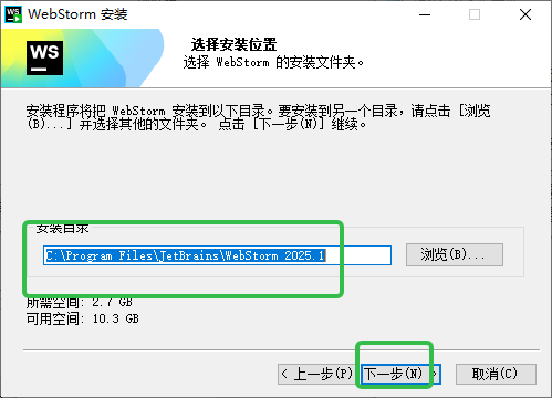 3、更改JetBrains WebStorm 2025安装位置,点击【下一步】。