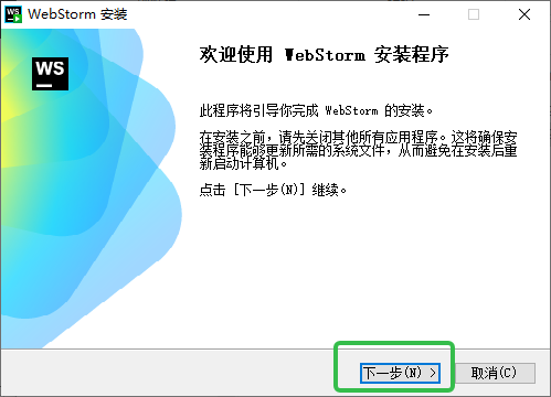 1、双击运行【WebStorm-2025.1.exe】安装程序。