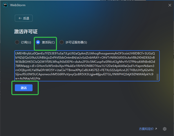 18、选择激活码方式,将激活码内容复制进去,点击【激活】。