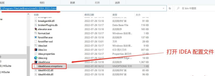进入 IDEA 的安装目录,进入 /bin 目录下,修改