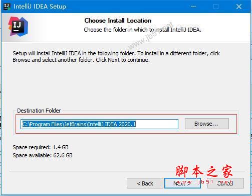 2、选择安装路径,默认C:\Program Files\JetBrains\IntelliJ IDEA 20xx