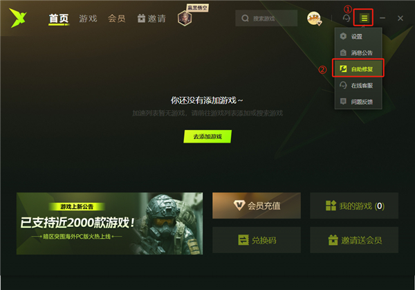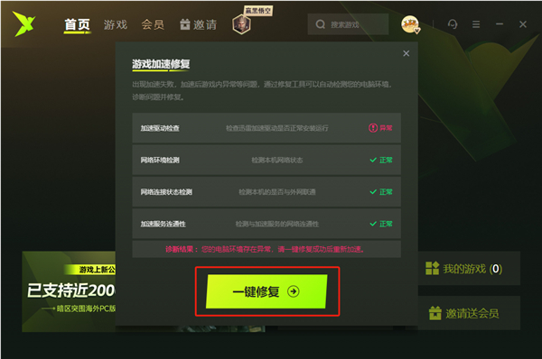 1、若出现加速失败、加速后游戏内异常等问题,通过修改工具可以自动检查您的电脑环境,诊断问题并修改