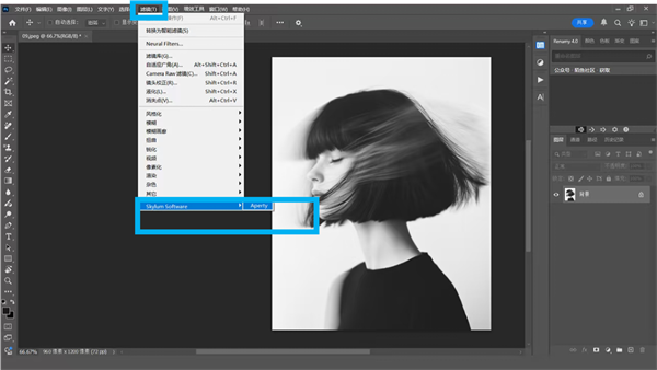 2、然后打开ps软件,在滤镜菜单中打开Aperty插件即可。