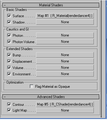 在Material Shaders 的Contour 选择 R_CShader(renderdancer4)控制水墨构边效果模块