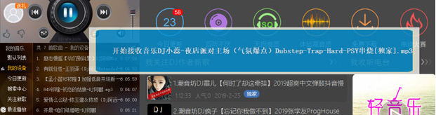 电脑端会显示开始接收的音乐名称。