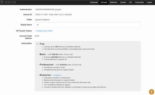 ZeroTier免费版可以添加100台设备,一般对于我们来说是完全够用的了~当然他也有基础版、专业版以及企业版~