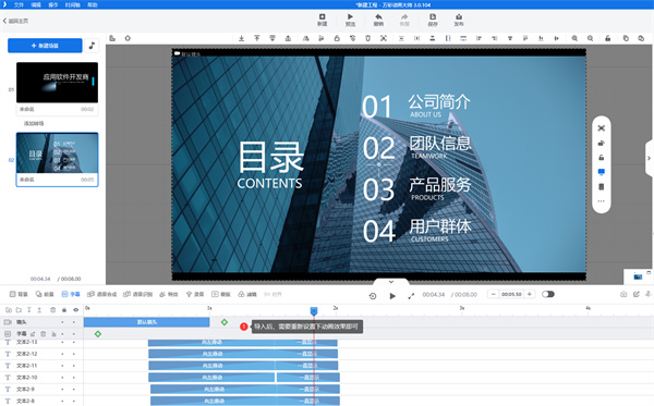 简单自定义场景元素的进场,强调及退出动画特效,让场景元素随心所动,分分钟做出专业动画视频大片效果,让微课、企业宣传、培训动画视频妙趣横生。