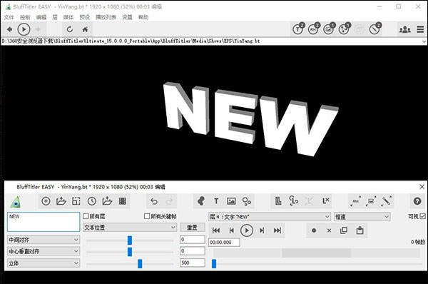 BluffTitler是一款极为出色非常强大的3D动画制作软件,通过该软件的动画工具可以对任何格式的文本进行制作,制作好的动画可以直接在软件中进行播放,用户还可以选择输出为视频文件和TGA文件的文件格式, 在其他播放器中进行播放。在这里你不仅可以创造3D动画,还可以渲染和播放3D视频动画,是一款集创建,渲染和播放于一身的3D文本动画制作工具。同时,在blufftitler中,还为用户新增了大量的背景、纹理、雾范围、雾色、颜色强度、淡入淡出、和各种跳动飞行等效果,使用这些添加到你的动画设计制作中,可使你的设计更有创意,并还有丰富的实例模板供用户选择使用。
