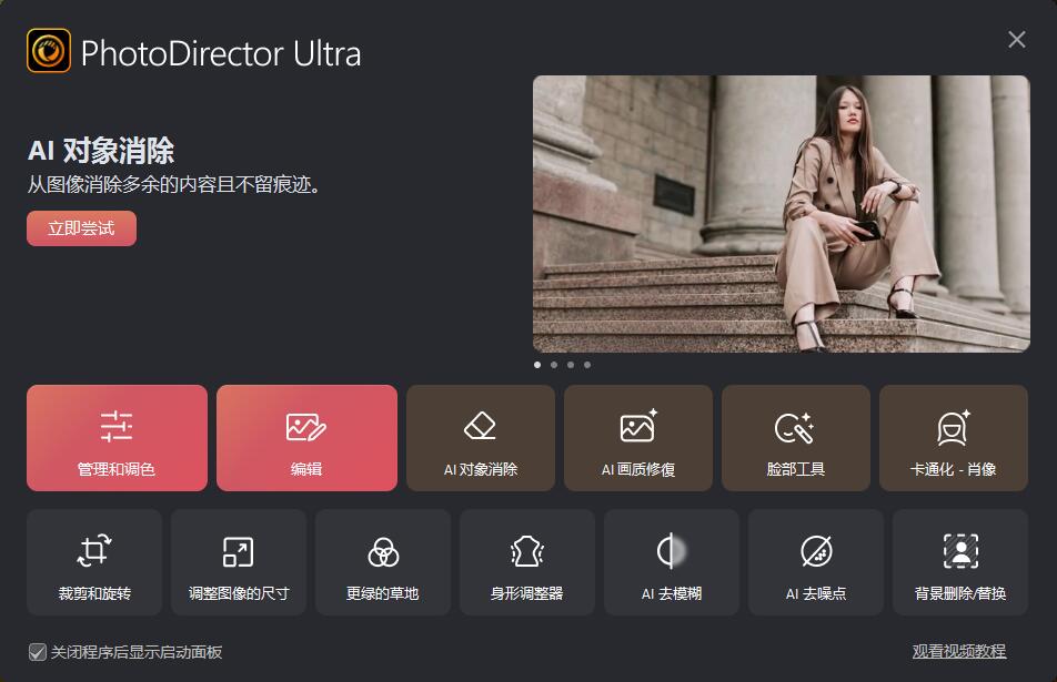 CyberLink PhotoDirector Ultra 是一款功能强大的专业级照片编辑软件,它可以为用户提供图片管理及处理所有阶段所必须的全部调整与处理工具,不仅可以帮助用户快速微调影像、修饰人物肖像、添加丰富效果,改善影像细节等之外,还可由使用户自己的图片及摄像作品变得更加美观。今天给大家分享的是CyberLink PhotoDirector Ultra+的极致版本,需要的朋友快快下载体验吧!