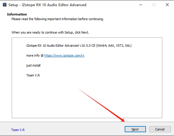 2、双击“iZotope RX 10.exe”文件运行,点击next开始安装。