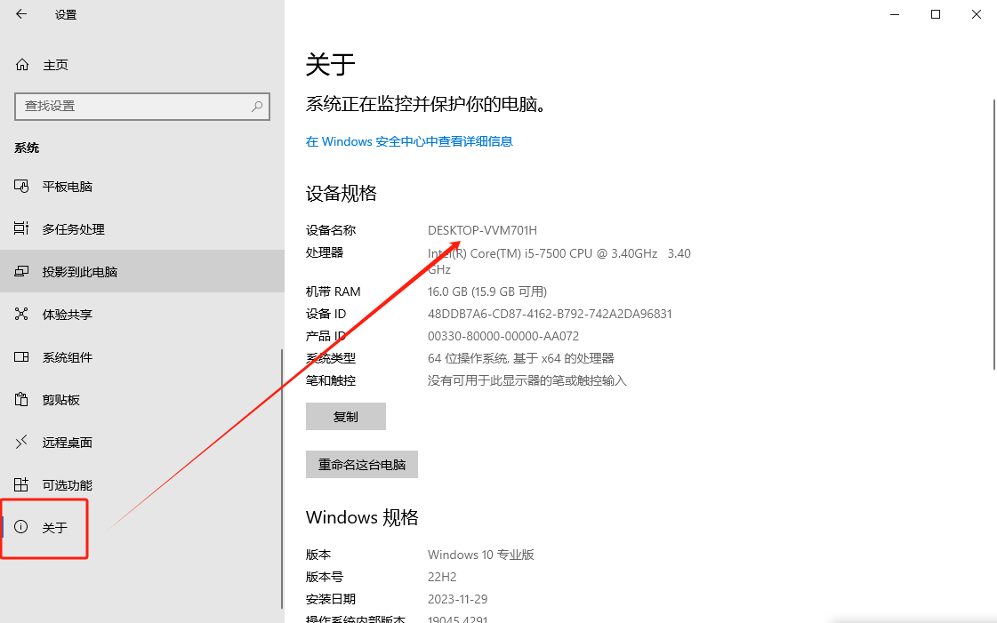 电脑设备名称查询方式如下: