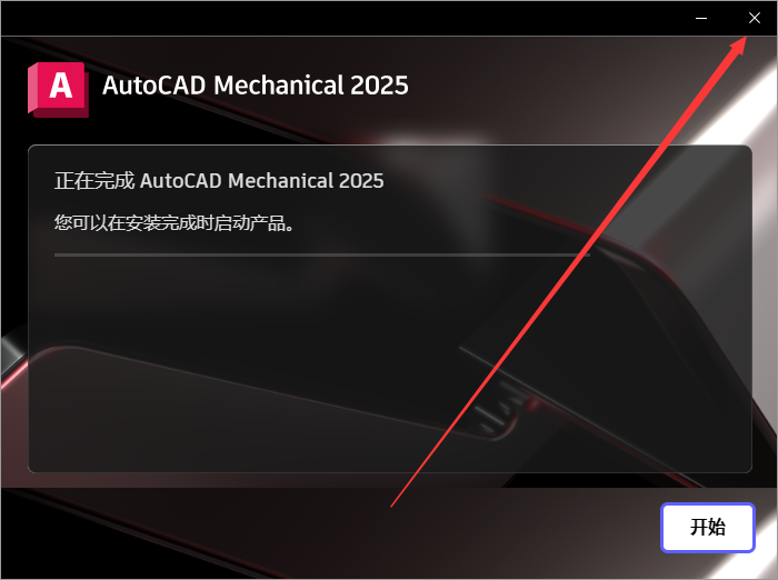 6、软件安装完成,点击右上角的X关闭就可以了,不要点击开始。