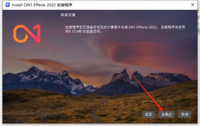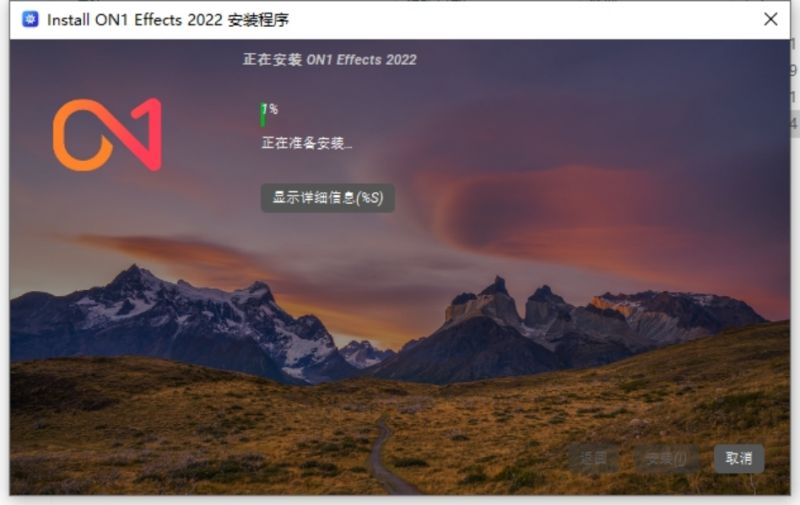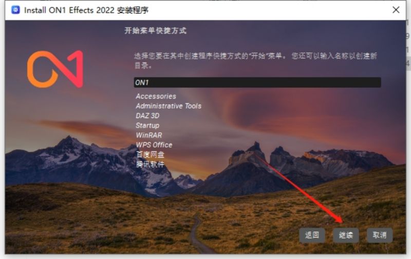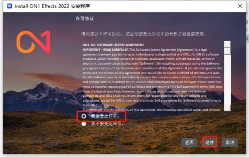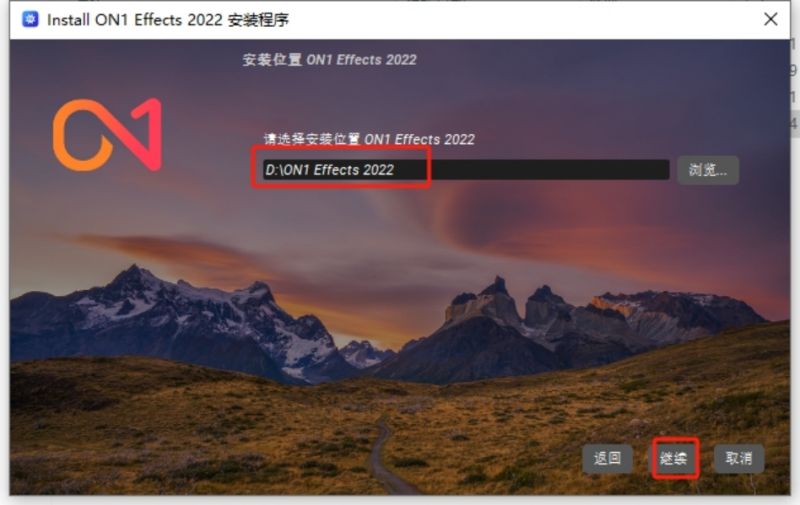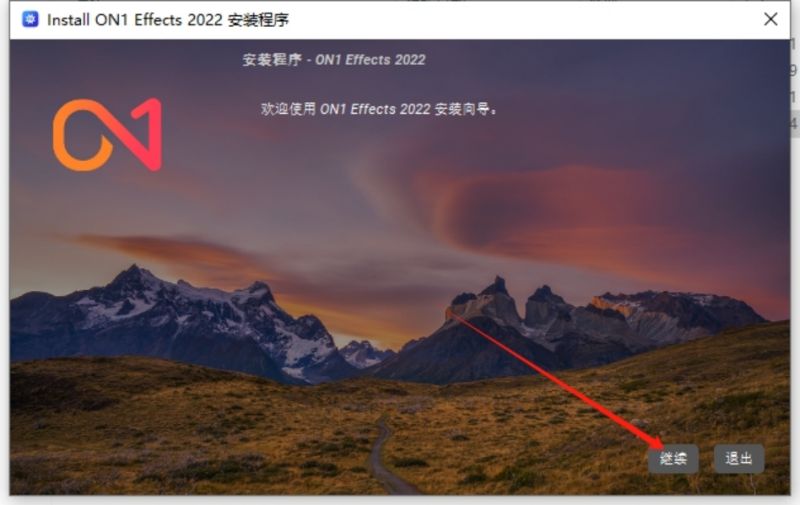 欢迎使用 ON1 Efects 2022 安装向导,点击继续