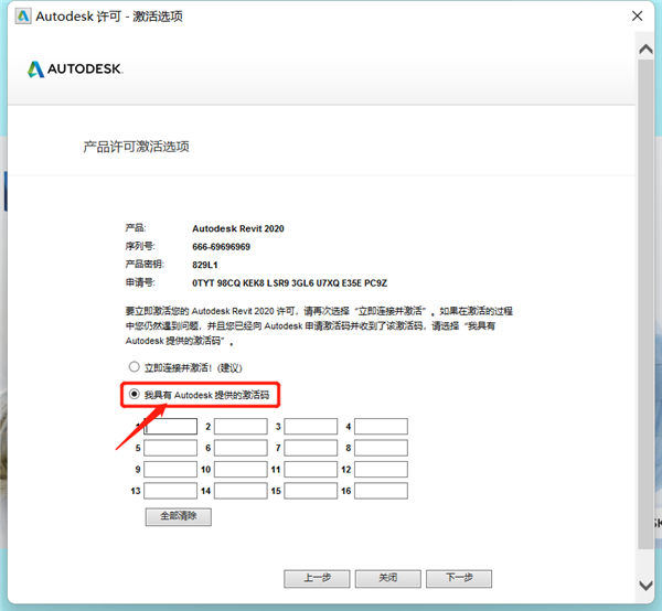 16、点击【我具有Autodesk提供的激活码】(注意不要关闭此界面);