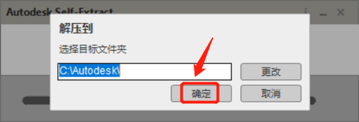 3、点击界面中的 【确定】 按钮即可开始安装(若需调整安装位置,可点击 【更改】 指定不含中文的路径。安装完成后,原解压的临时文件夹可安全删除,释放磁盘空间;(路径无中文可防止软件读取异常,删除临时文件不影响已安装的程序运行)