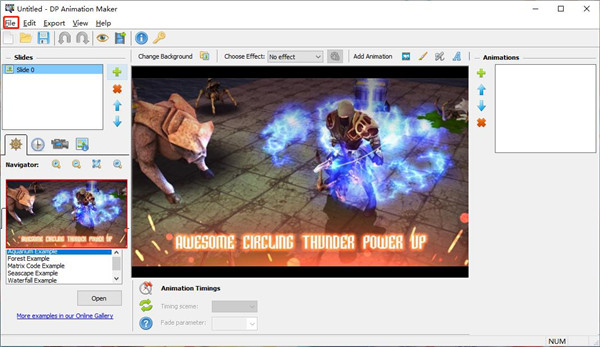 DP Animation Maker是一款非常好用的动画制作工具,软件具备友好美观的操作界面,允许用户创建动画背景,网页用的动画GIF文件,以及EXE绿色单文件,还提供了众多动画特效,可以满足用户的众多动画创作需求。