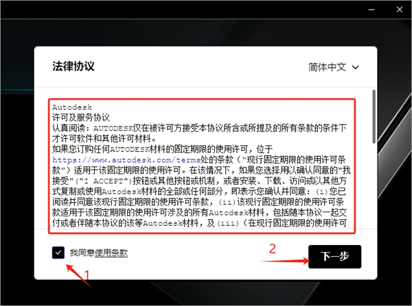 3、阅读完协议后,勾选我同意前方的框,再点击下一步,如图所示;