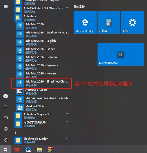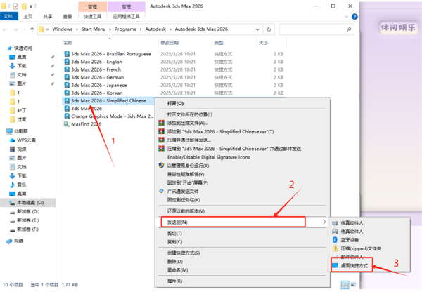12、进入Autodesk 3ds Max 2026文件夹,选择3ds Max 2026 - Simplified Chinese右键发送到桌面快捷方式即可;