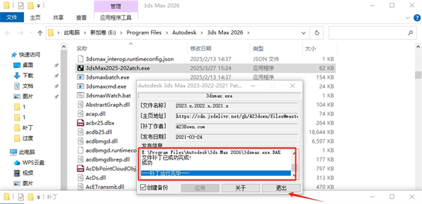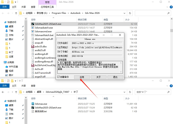 9、以管理员身份运行“3dsMax2025-202atch.exe”程序,点击应用即可;