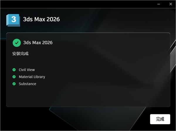 以上即是3DS MAX2026安装激活教程,由于软件对系统要求较高,初次启动软件可能比较久!