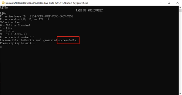 9、鼠标右键以管理员身份运行Ableton Keygen v2.exe,输入代码,然后回车;
