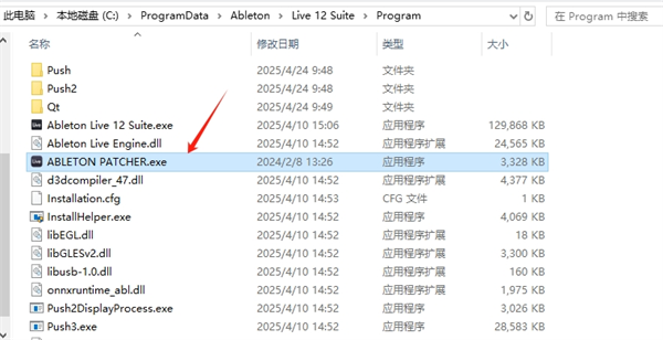 5、在电脑启动项找到Ableton Live 12 Suite.exe,创建快捷方式发送到桌面后,右键打开文件所在位置,把压缩包内的【ABLETON PATCHER.exe】文件,复制到软件安装目录当中;