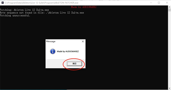 6、鼠标右键以管理员身份运行ABLETON PATCHER.exe,点击确定;