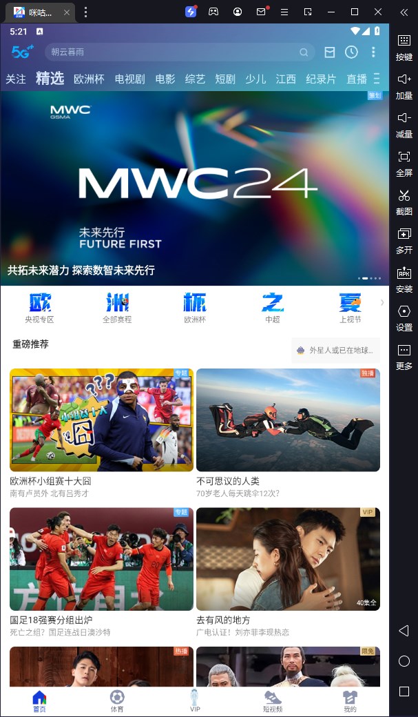 咪咕视频电脑版是一款需要借助模拟器在PC端运行的视频播放软件。海量精彩影视资源,开启电脑全屏观看,无需下载无需缓存,只要用户开启影视资源,就能实现边播边加载。相对于普通的视频播放软件来说,它具有更加稳定的资源,毕竟咪咕视频也上线那么多年了,肯定功能什么的都是比较完善的,同时聚合了全网的视频资源,提供免费播放服务,找到感兴趣的影片直接进行在线播放,具有高清晰的视频画质,用户能够轻松的获得非常不错的观影体验。在电脑上看影视,无论是画质还是屏幕大小,都比在手机上看要更舒服,并为您提供电视剧、电影、动漫、音乐、新闻、娱乐、游戏、原创搞笑等等海量视频内容,高清流畅播放,极速离线缓存。咪咕视频账号可以多端同时使用,同时为付费用户提供更优质的会员服务及权益,能及时同步各院线大片,只要开通会员即可收视相关会员影视资源,毕竟比较有名的影视客户端也就那么几个,几乎都是需要开会员的,但是咪咕视频会员经常可以在各大平台免费领取,能看精彩影视,还能节省一大笔开销,如果你也喜欢看电视的话。