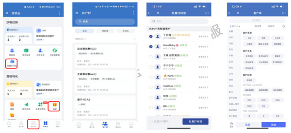 为提升私域运营能力,客户通全面升级,新增营销素材中心 、聊天侧边栏 、群营销、场景化营销工具 、运营日历。同时,小程序商城支持优惠券、拼团、秒杀等,帮助企业主动营销增强转化趋势。