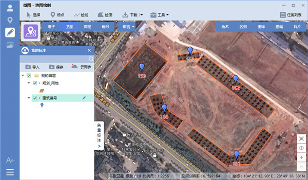 可以将手机上标注绘制的位置标注同步到云,也可以将云数据同步到微图APP移动端进行增加、删除和修改。