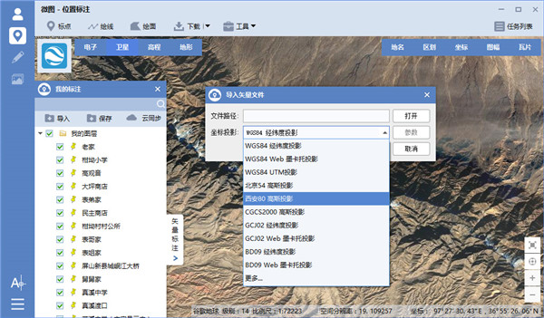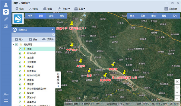 可以将位置标注同步到云,也可以将云数据同步到微图PC端进行增加、删除和修改