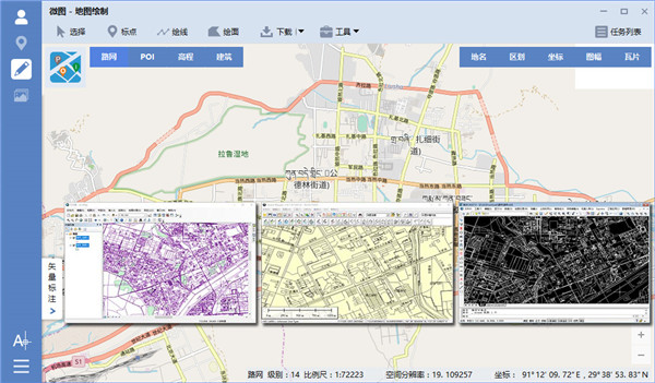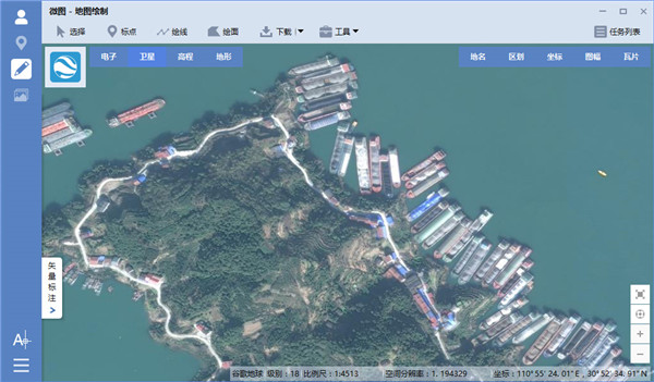 水经微图是一款专业的地图管理软件,软件集在线地图大图拼接,地图重投影,瓦片重切片以及地图标注,为广大用户提供专业的GIS绘制功能,照片管理以及数据云同步等功能,让你可以更加轻松的进行地图绘制管理。水经微图电脑版中的地图精度高,图像形象,与服务器连通,能够及时更新地图情况,还有专业的图拼接、地图重投影、瓦片重切片、地图标注、矢量下载、矢量叠加、CAD制图、专业GIS绘制、照片管理和数据云同步等功能。内有专业GlS地图绘制、照片管理、CAD制图、云同步矢量数据、云同步照片、高清卫星影像下载等功能,可为用户提供高精度的地图,还支持图像数据裁剪和背景透明度,支持高程数据裁剪和背景透明度等。
